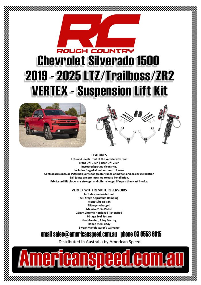 American Speed is a family owned Australian business located in Moorabbin Victoria. We specialize in the importation and distribution of specialty products from Borla Exhausts - Injen Cold Air Intakes - Rough Country Suspension Products - Fox Suspension - BellTech Suspension - KOOKS Headers - AirLift - Side Steps - Tonneau Covers and many other brands and products for your American trucks and 4X4's. We cover products for the Chevrolet Silverado 1500/2500/3500 - Ram 1500/2500/3500 - Ford F150/F250/F350 - Jeep - GMC and many others. If you need great service, best price and the right advice call us on 03 9553 6915 or email sales@americanspeed.com.au.